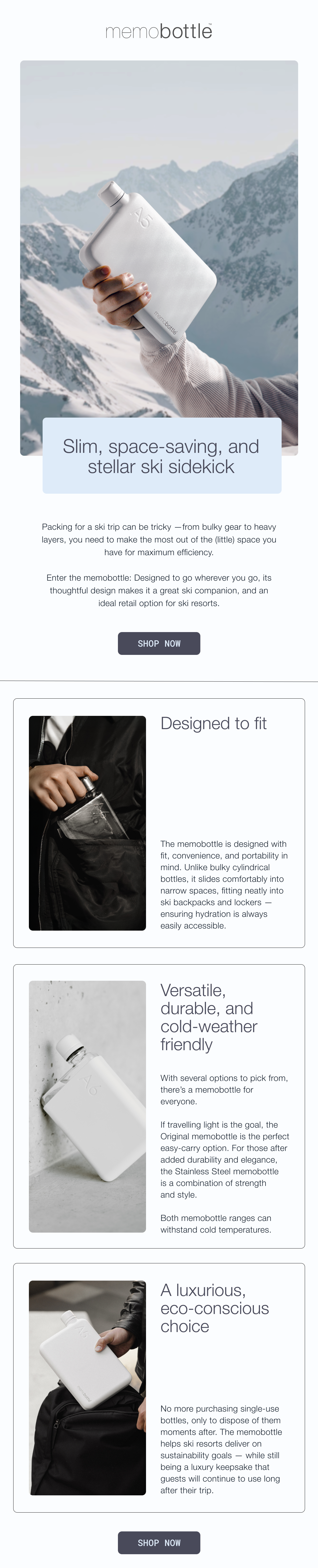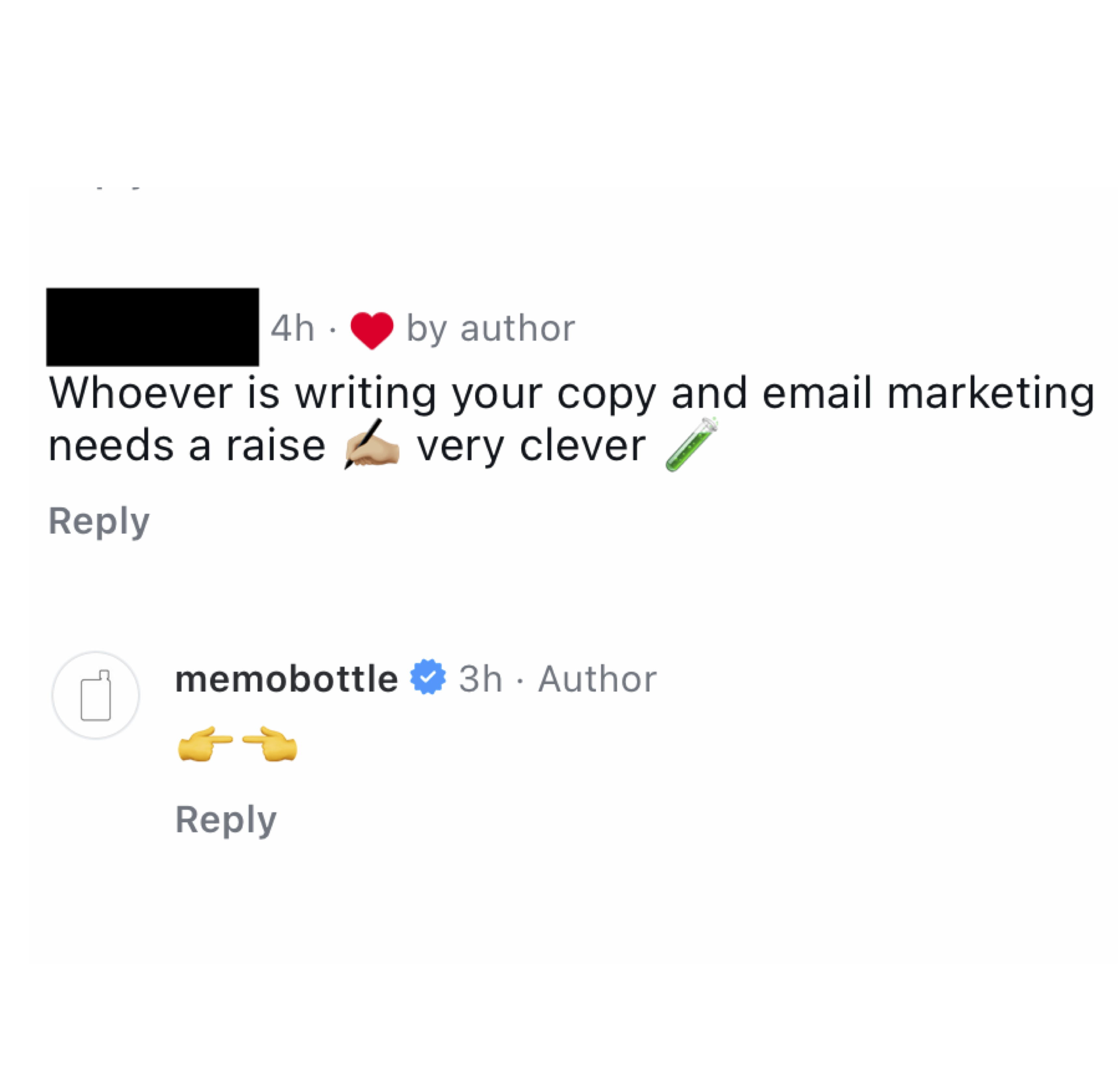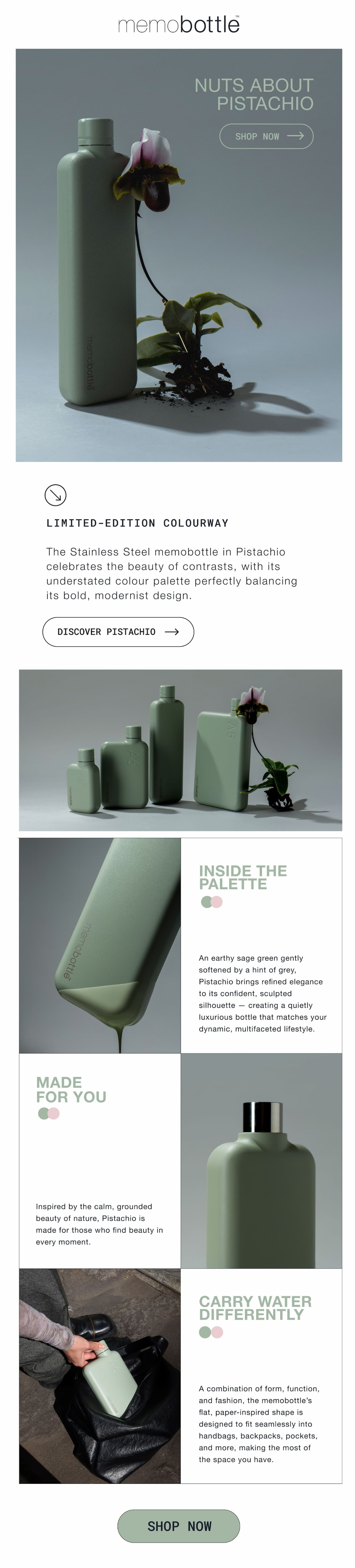 For Memobottle’s Pistachio launch campaign, the goal was to have a dreamy, perfume-esque tone with flowing sentences