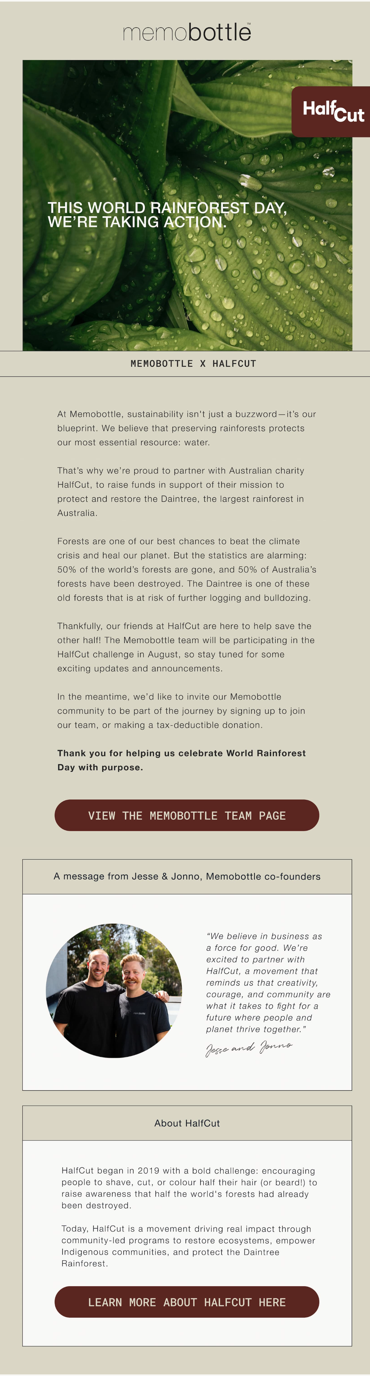 The launch of Memobottle’s partnership with Australian non-profit organisation HalfCut