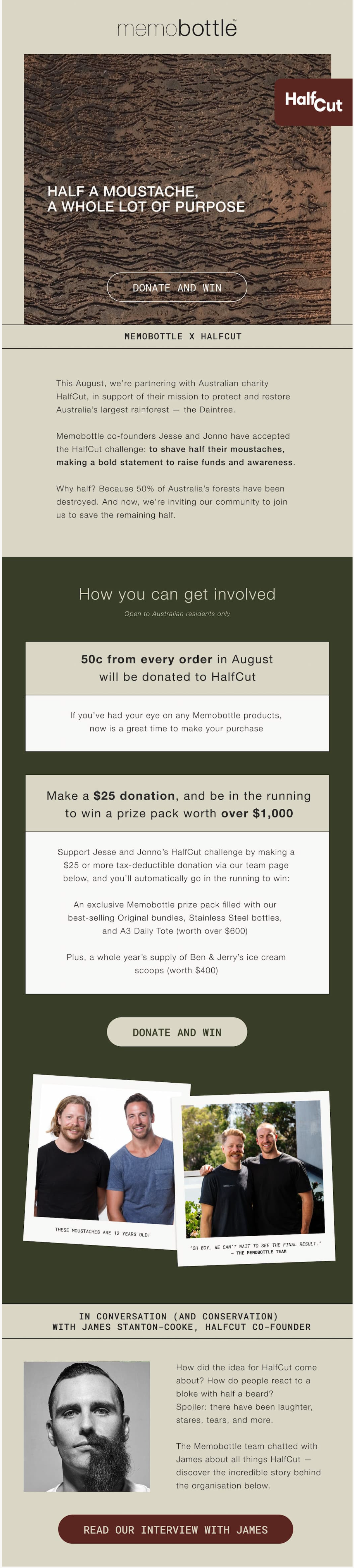 With e-commerce brands (and dwindling attention spans), it’s not often that words get to play a starring role. However, the launch of this charity partnership required comms that provided an earnest explanation of how and why this collaboration was so important to the brand — encouraging sign ups and donations for a good cause.